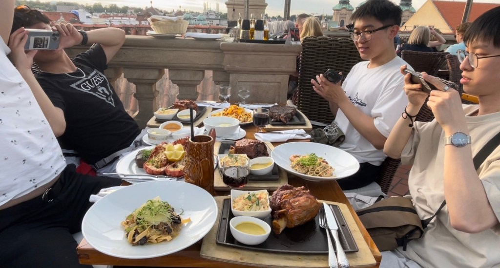 - Accidentally walking in and eating in an extremely fancy Czech restaurant. My friend had apparently led us into the wrong restaurant and even though they had their tables all reserved, they still somehow made room for us🙃It was good, obviously, like really good. The steaks melted like butter in my mouth, and we also tried an apparent Czech specialty which was a fat knuckle of pork.
