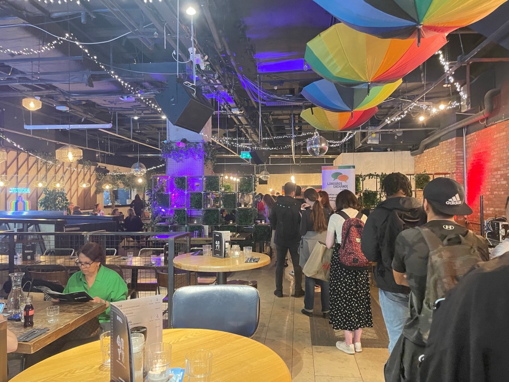 I quickly learned from the others the procedure of the place in a bit more detail, as they had come quite regularly over the summer. I also found out this event really was quite popular every week, with an average of 100 people coming every day it was on. Unsurprisingly, the Romance languages were the most popular, with rows and rows of tables being solely dedicated to Spanish learners alone.